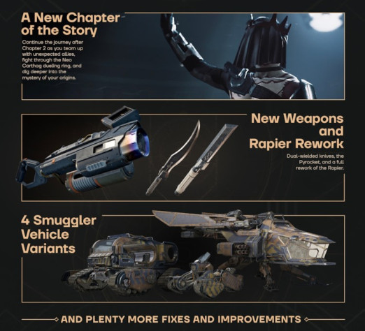 Дополнение расширило возможности строительства, предложив 74 строительных элемента и 17 украшений для жилища в стиле контрабандистов. Также появятся свежие варианты брони, дистикомба, багги и оружия. В набор входят и новые жесты: взгляд на горизонт и изучение почвы.
