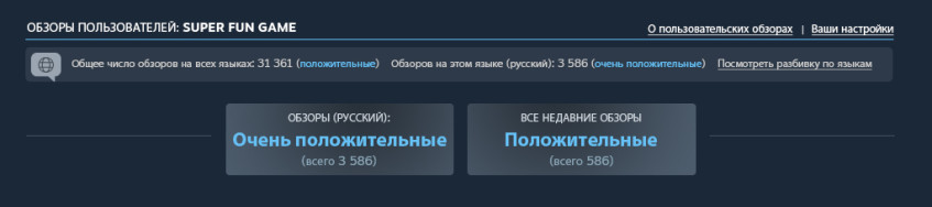 Изменение затрагивает игры, у которых более 2 тысяч общедоступных отзывов и не менее 200 из них — на одном языке. Если у того или иного развлечения подсчитано несколько оценок, это будет указано на его странице.