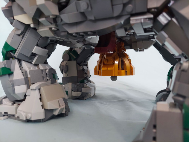 По словам HoboSapient, в работе он использовал 5–6 тысяч деталей. В ход пошли собранные за 20 лет наборы, а основную их часть составили конструкторы Technic, из элементов которых собирают механизированные модели. Автор назвал свои строительные материалы «довольно крепкими». Масса громадины достигла примерно 30 фунтов или 13,6 килограмма.